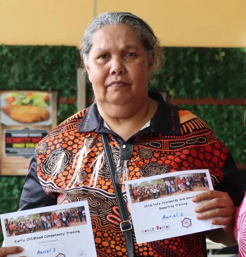 Sashanna Armstrong began her journey with the Pertame school and Ngketja Untja in 2023 as a Parent Educator.At the start of her Pertame journey Sashanna began attending the Language Nest, Ngketja Untja with two of her children in 2023 learning how to speak Pertame. Within two years of attending the Nest, Sashanna then went on starting her career as a coordinator of the Language Nest. Where she continues passing down knowledge of the Pertame language, teaching the next generation of speakers.